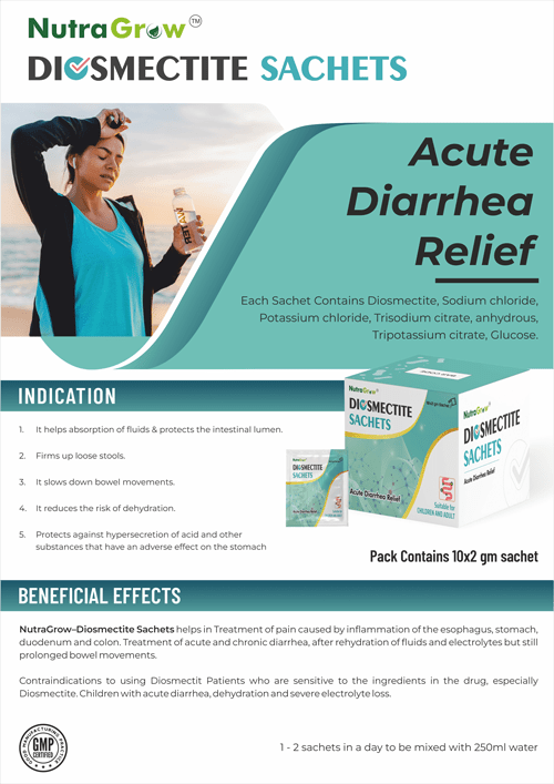 Treatment of pain caused by inflammation of the esophagus, stomach, duodenum and colon. Treatment of acute and chronic diarrhea, after rehydration of fluids and electrolytes but still prolonged bowel movements. Contraindications to using Diosmectit: